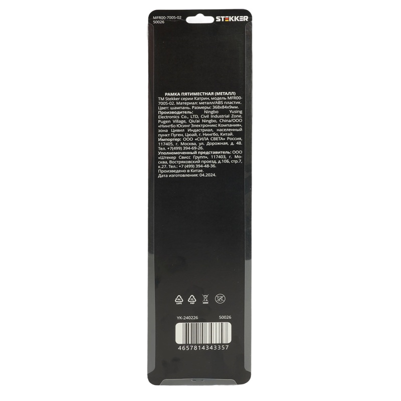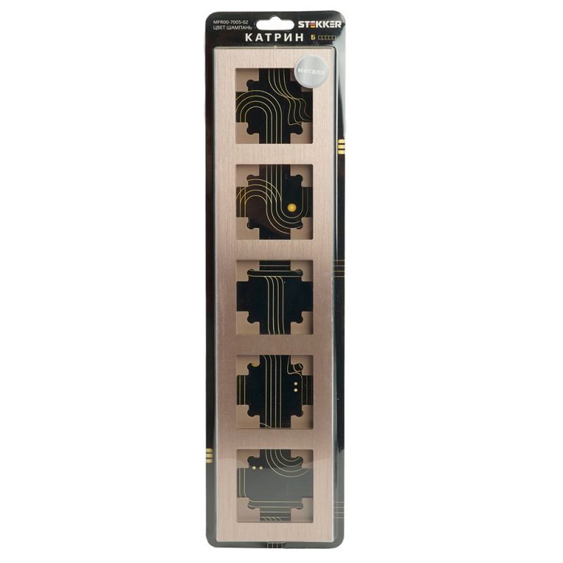 Характеристики Рамка 5-местная, металл, STEKKER, MFR00-7005-02, серия Катрин, шампань