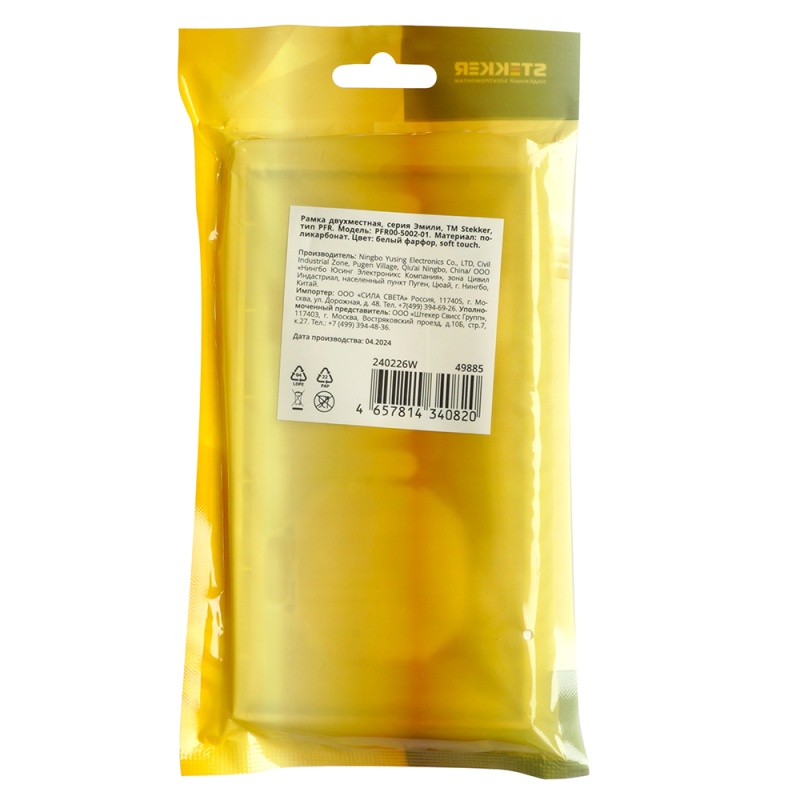 Характеристики Рамка STEKKER, PFR00-5002-01 2-местная, серия Эмили, белый фарфор, soft touch