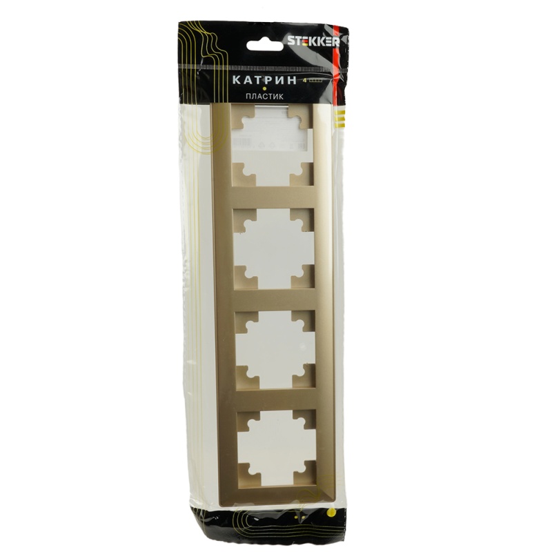 Отзывы о Рамка STEKKER, PFR00-7004-08 4-местная, пластик, серия Катрин, золото