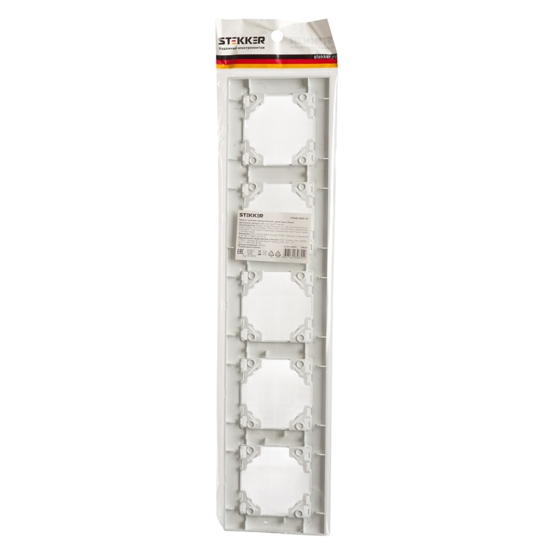 Характеристики Рамка 5-местная горизонтальная STEKKER, PPFR00-9005-01, серия Эрна, белый