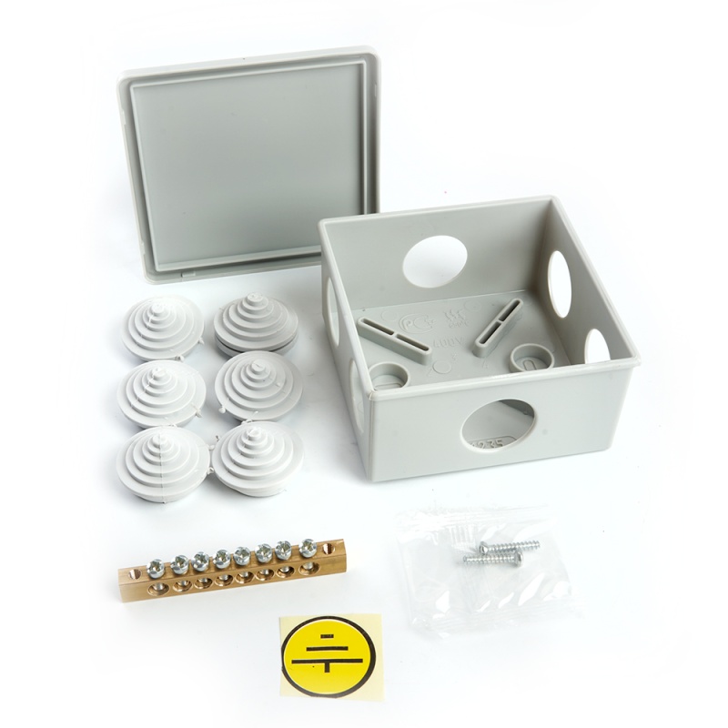 Характеристики Коробка разветвительная уравнивания потенциалов (КУП) STEKKER EBX20-36-44, 85*85*40мм, 6 вводов, IP44, светло-серая (GE41360)