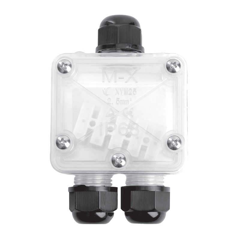 Характеристики Коробка распределительная STEKKER LD538 водонепроницаемая на 3 выхода, 450V, 110х70х35, прозрач