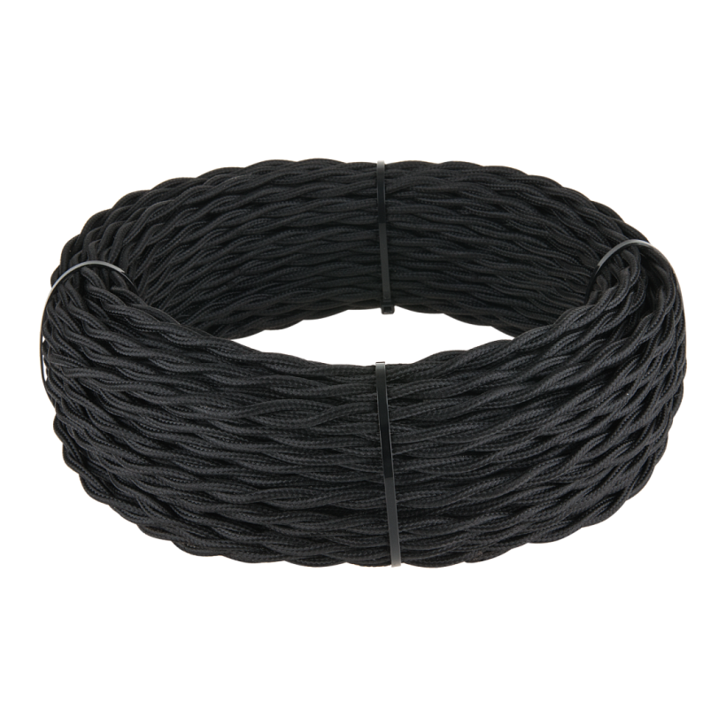 Характеристики Ретро кабель витой 2х2,5 черный 20 м (под заказ) Ретро кабель витой 2х2,5 (черный) 20м