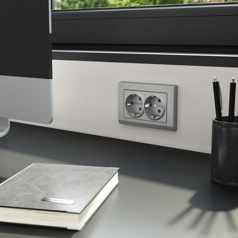 Отзывы о Розетка двойная с заземлением (серебряный матовый) W1172065