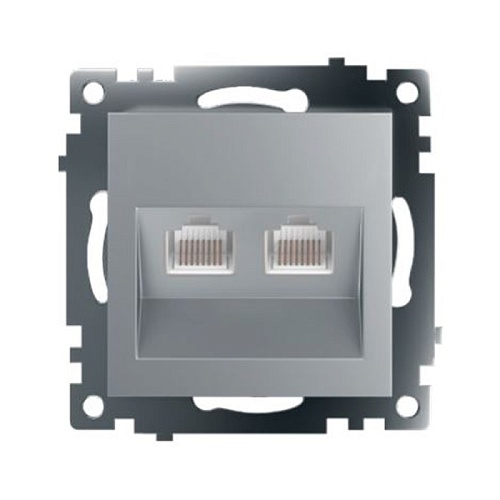 Характеристики Розетка компьютерная 2-местная RJ-45 (механизм) STEKKER GLS00-7109-03 , серия Катрин, серебро