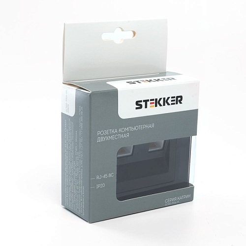 Характеристики Розетка компьютерная 2-местная RJ-45 ,STEKKER ,GLS00-7006-05, серия Катрин, черный