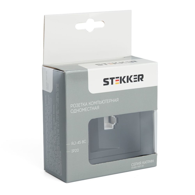 Характеристики Розетка компьютерная 1-местная RJ-45,STEKKER, GLS00-7007-05, серия Катрин, черный