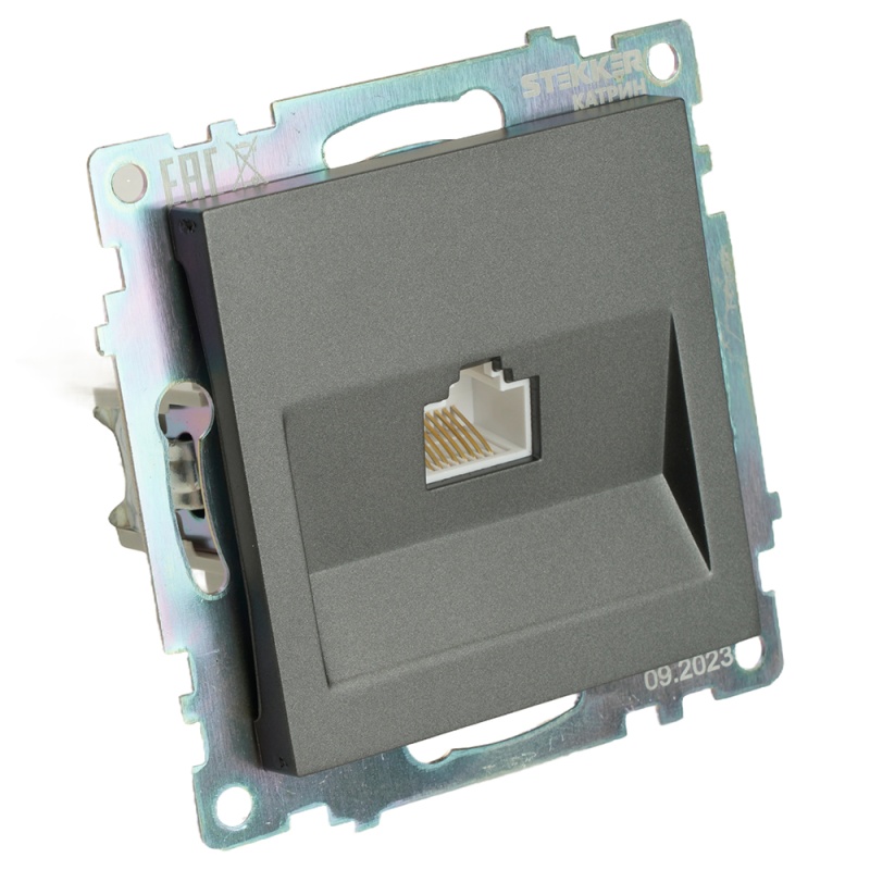 Розетка компьютерная 1-местная RJ-45 (механизм), серия Катрин, графит, GLS00-7107-06
