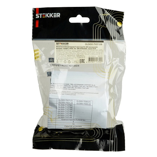 Характеристики Розетка компьютерная 1-местная RJ-45 (механизм), серия Катрин, графит, GLS00-7107-06