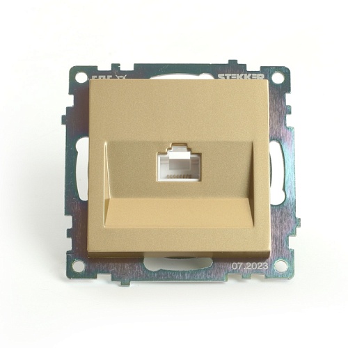 Розетка компьютерная 1-местная RJ-45 (механизм), STEKKER, GLS00-7107-08, серия Катрин, золото