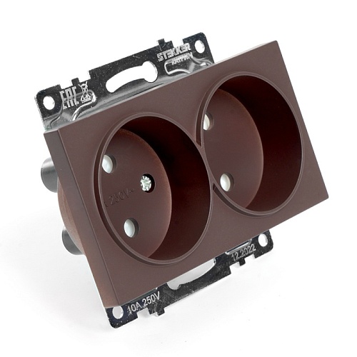 Розетка 2-местная б/з (механизм), STEKKER GLS10-7113-04, 250V, 10А с защитной шторкой, серия Катрин, шоколад