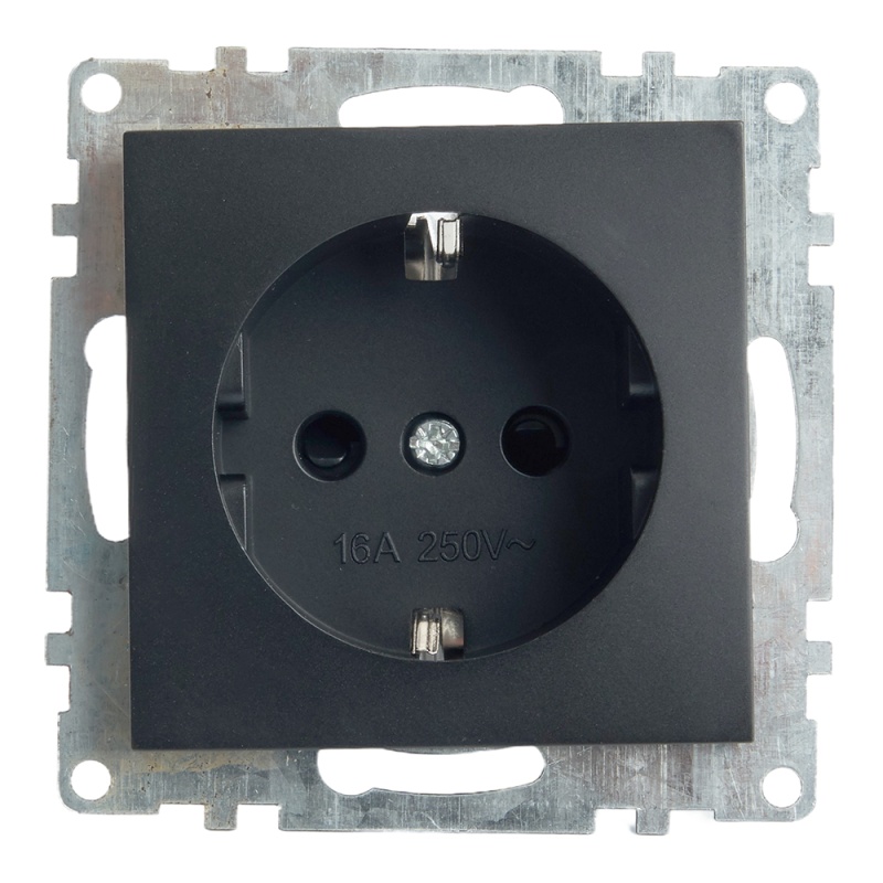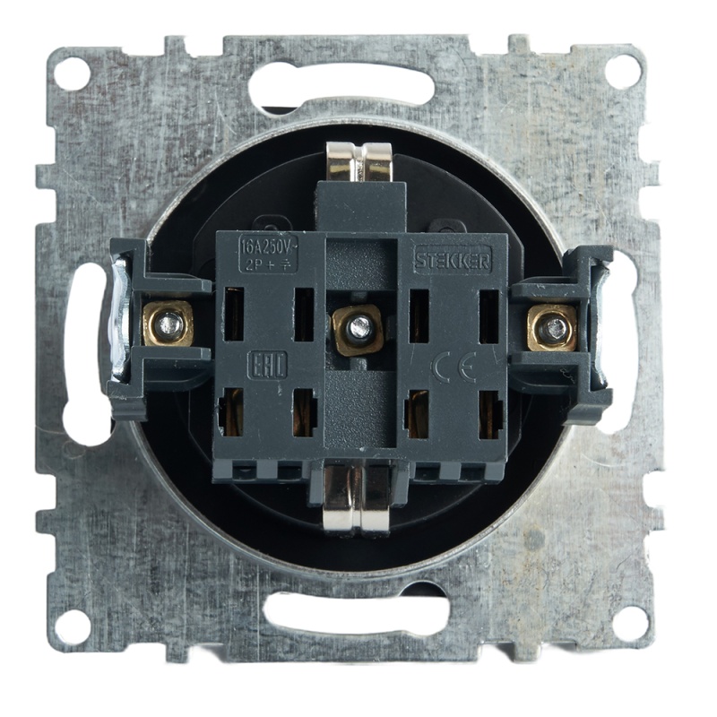 Характеристики Розетка 1-местная с/з (механизм), STEKKER GLS16-7110-05, 250В, 16А с защитной шторкой, серия Катрин, черный