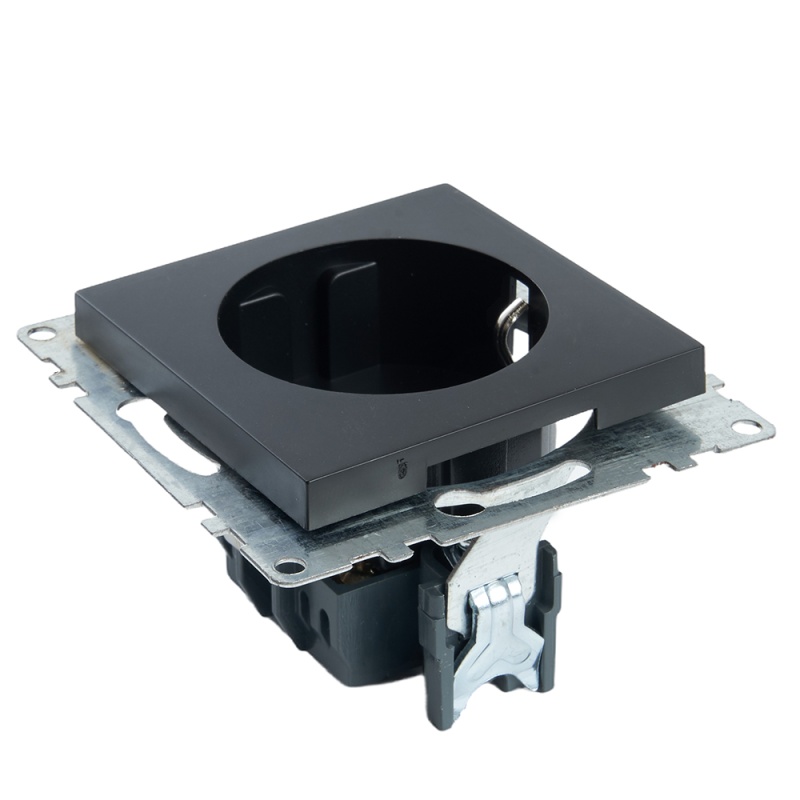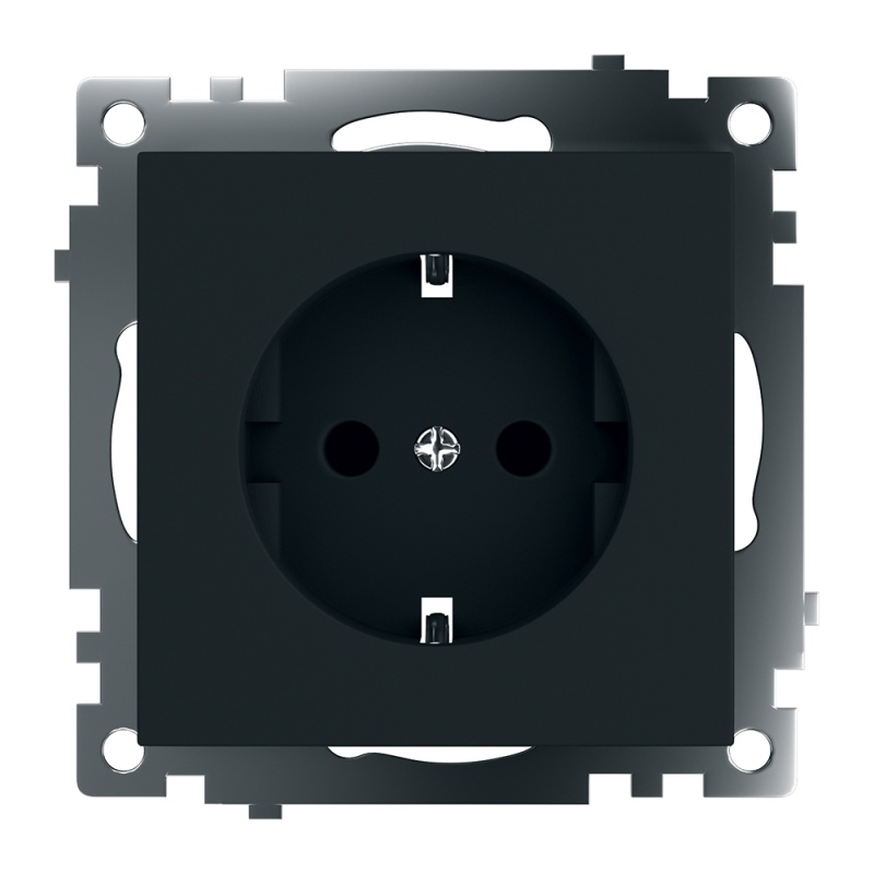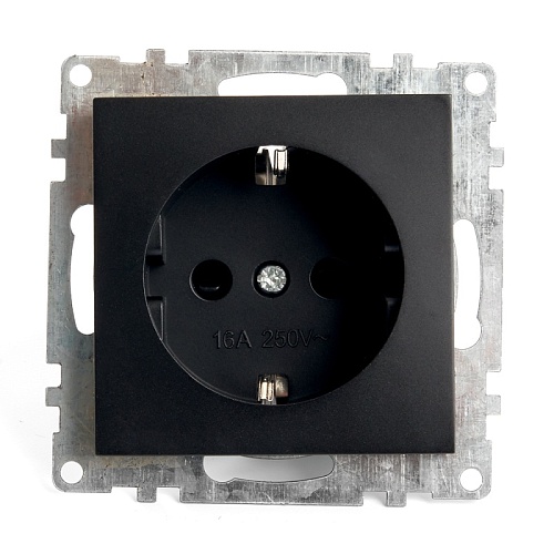 Розетка 1-местная с/з (механизм), STEKKER GLS16-7110-05, 250В, 16А с защитной шторкой, серия Катрин, черный 39610