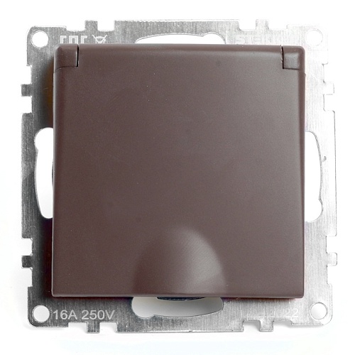 Розетка 1-местная с/з с крышкой (механизм), STEKKER GLS16-7112-04, 250В, 16А с защитной шторкой, серия Катрин, шоколад