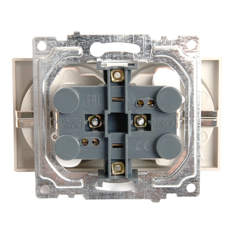 Характеристики Розетка 2-местная с/з (механизм), STEKKER GLS16-7114-02, 250В, 16А с защитной шторкой, серия Катрин, шампань