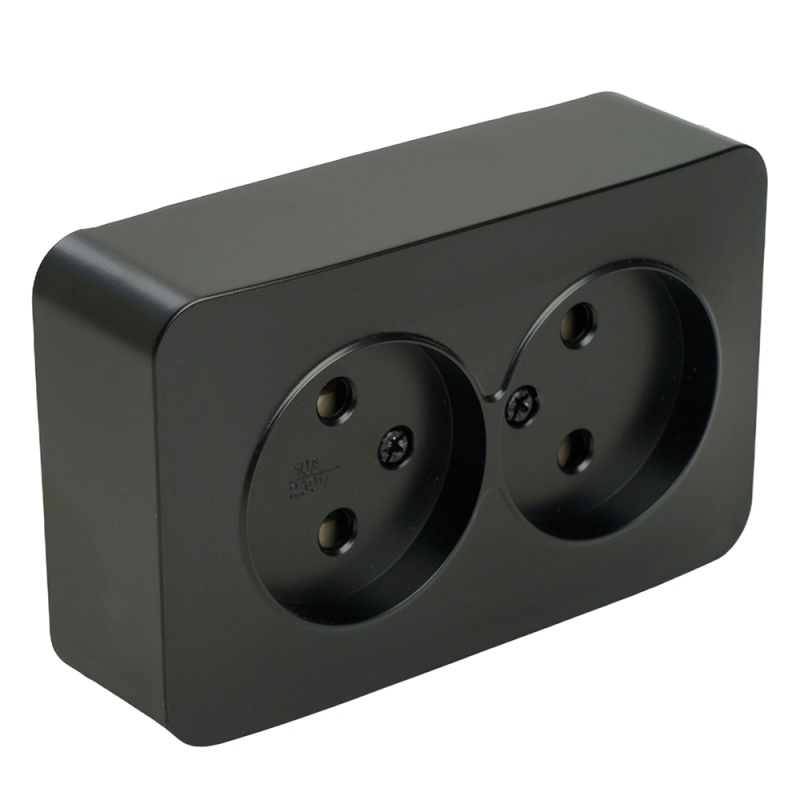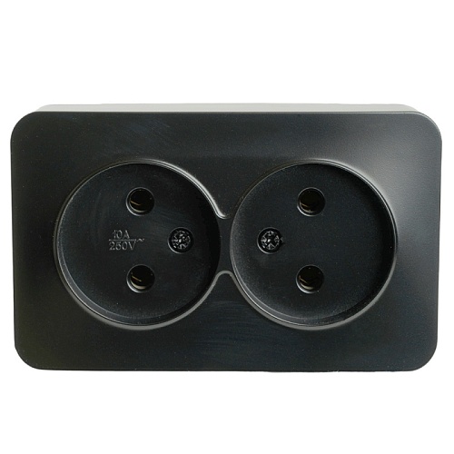 Розетка 2-местная б/з открытой установки, STEKKER, 250В, 10А, IP20, серия София, черный матовый, MST10-12-05