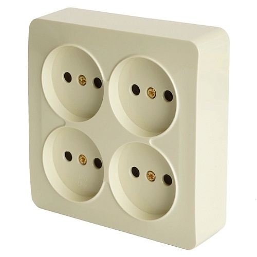 Розетка 4-местная б/з открытой установки, квадрат, STEKKER, 250В, 10А, IP20, серия София, слоновая кость, MST10-14S-04 49507