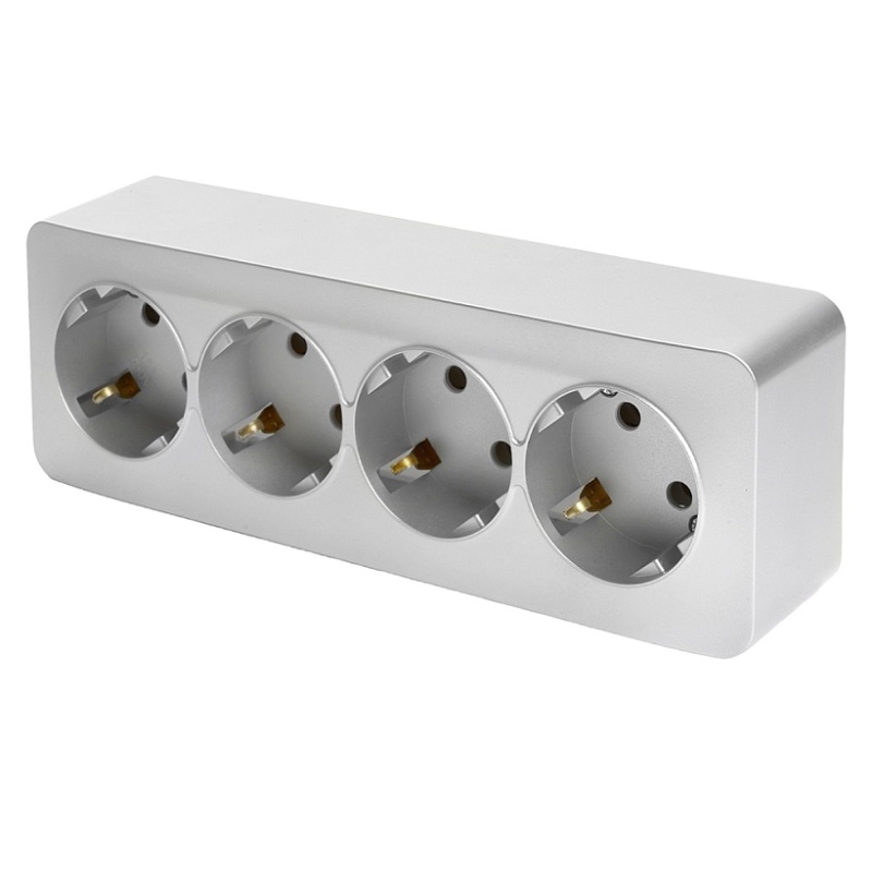 Розетка 4-местная с/з открытой установки, STEKKER, 250В, 16А, IP20, серия София, серебро, MST16-14-03