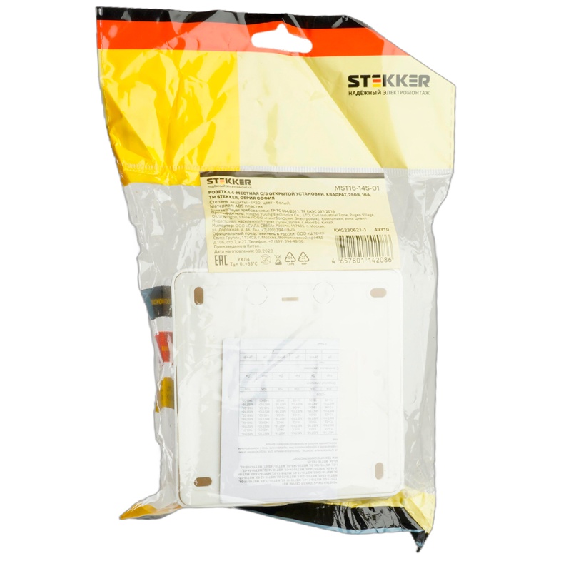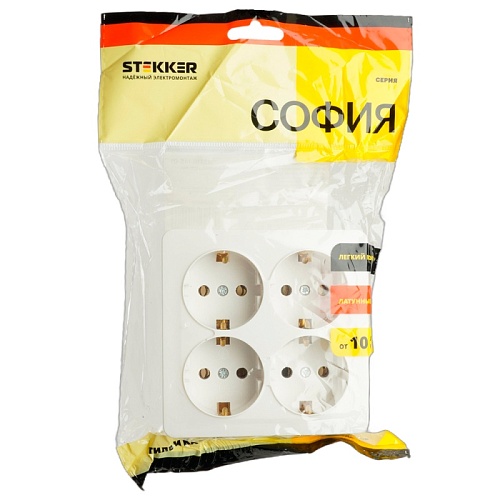 Отзывы о Розетка 4-местная с/з открытой установки, квадрат, STEKKER, 250В, 16А, IP20, серия София, белый, MST16-14S-01
