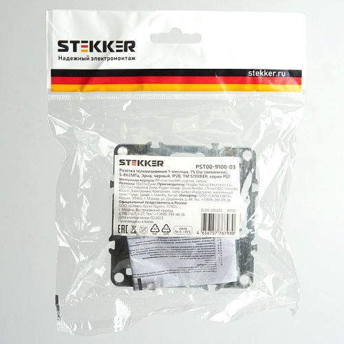 Отзывы о Розетка телевизионная 1-местная (механизм), STEKKER, PST00-9108-03, 75 Ом, 5-862МГц, серия Эрна, черный