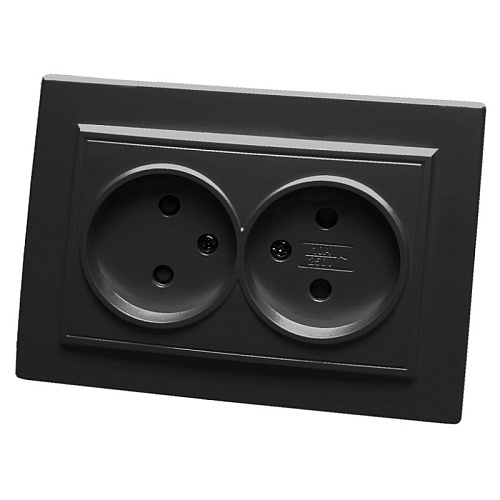 Розетка 2-местная б/з STEKKER, PST10-9013-03, 250В, 16А, с защитной шторкой, серия Эрна, черный 39478