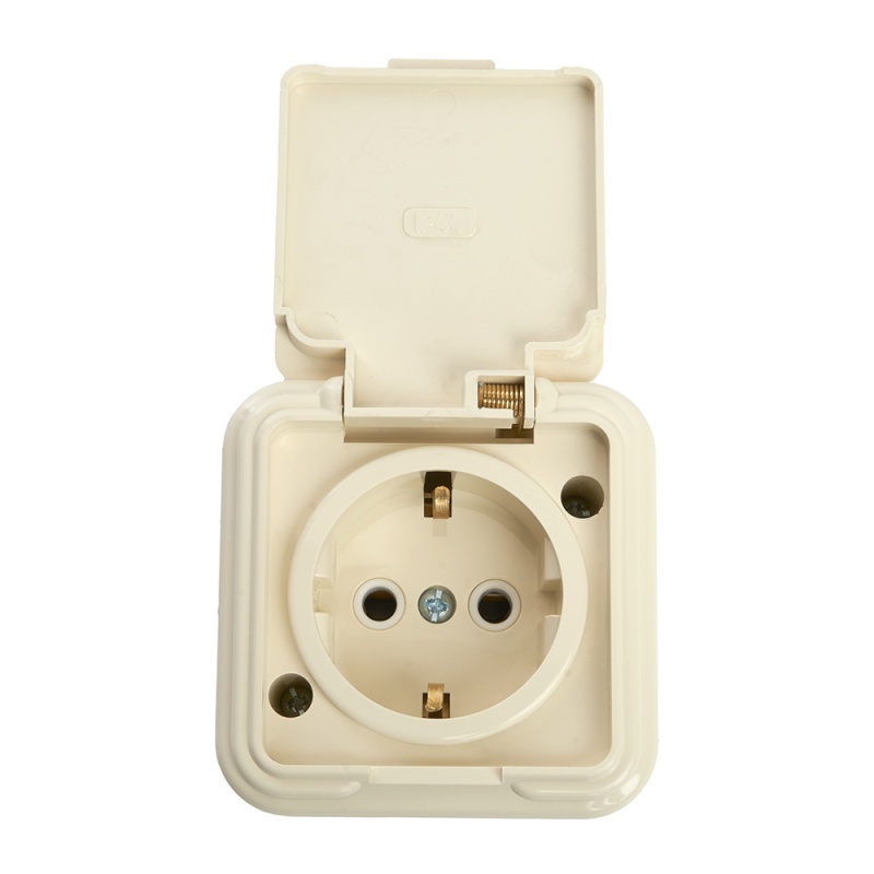 Характеристики Розетка 1-местная с/з, с крышкой, STEKKER, PST16-21-44 (RA 16-211-БЖ), пластик АВС, 250В, 16А, IP44, слоновая кость (RA 16-211-С)