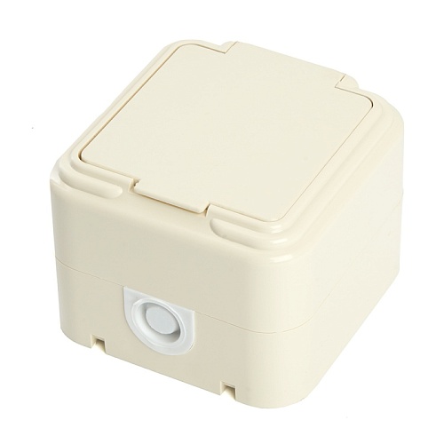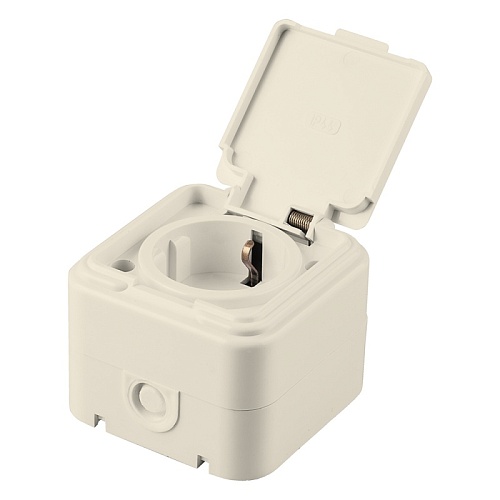 Розетка 1-местная с/з, с крышкой, STEKKER, PST16-21-44 (RA 16-211-БЖ), пластик АВС, 250В, 16А, IP44, слоновая кость (RA 16-211-С) 49058