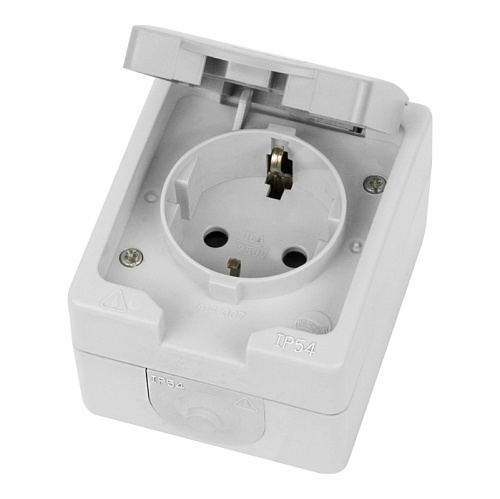 Характеристики Розетка 1-местная с крышкой с/з STEKKER, PST26-11-54, пластик АВS, 250В, 16А, IP54, белый/серый