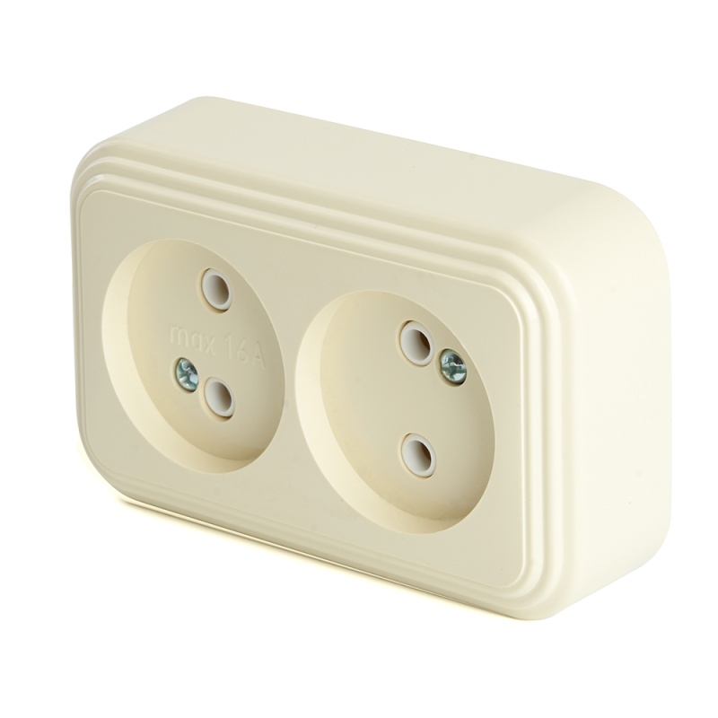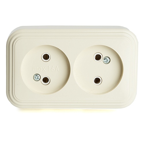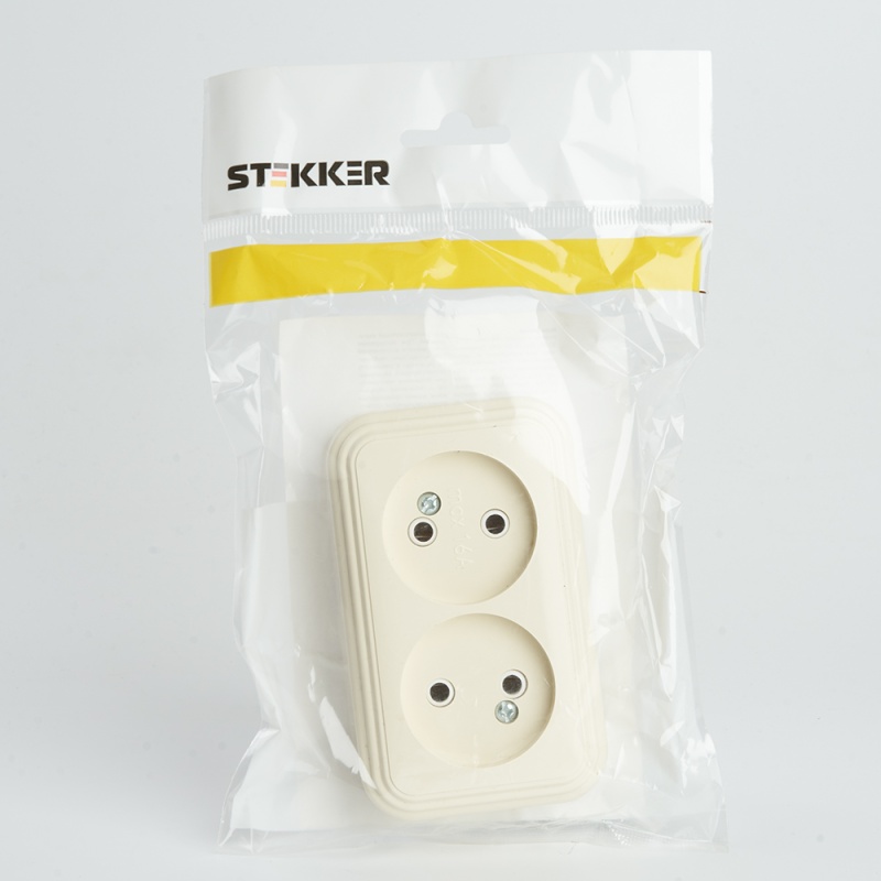 Характеристики Розетка 2-местная б/з STEKKER, PST16-30-20 (RA 16-237-БЖ), пластик АВС, 250В, 16А, IP20, слоновая кость