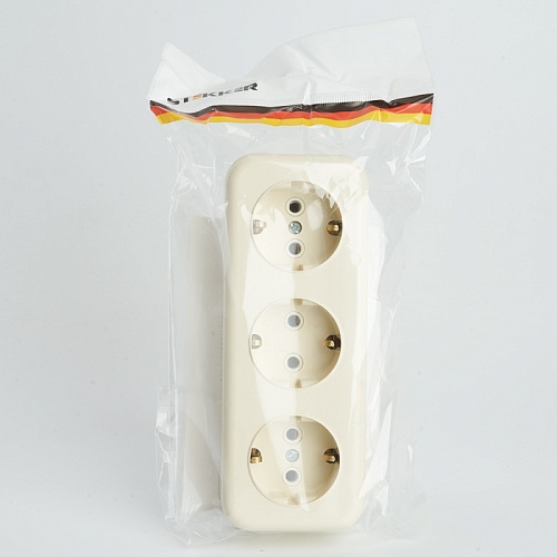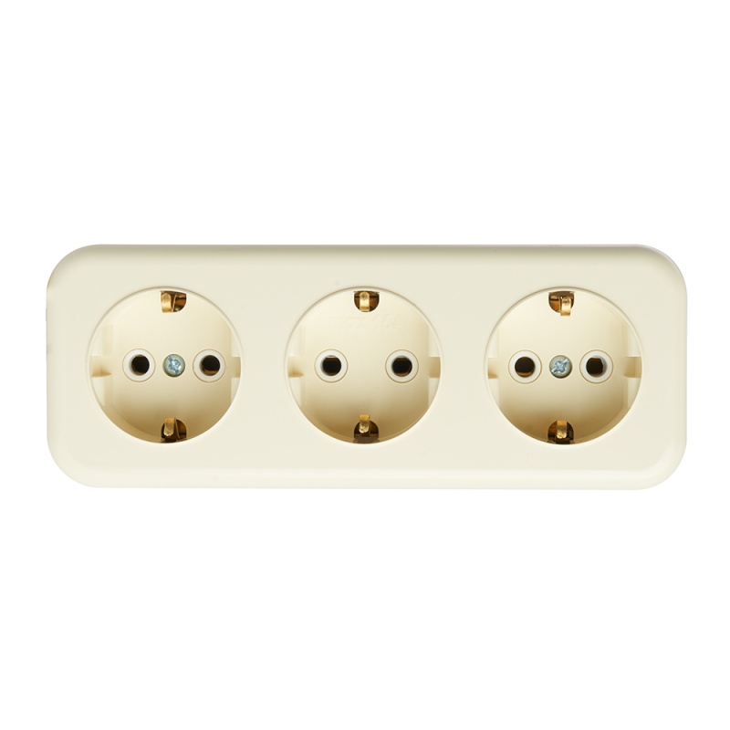 Розетка 3-местная с/з STEKKER, PST16-51-20 (RA 16-343-БЖ), пластик АВС, 250В, 16А, IP20, слоновая кость 49054