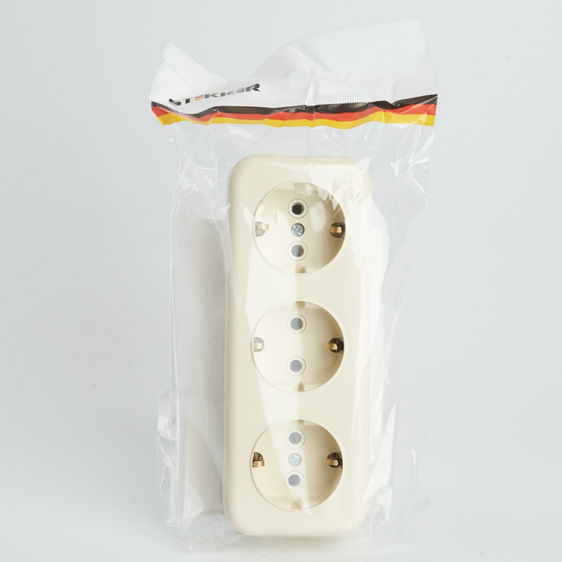 Розетка 3-местная с/з STEKKER, PST16-51-20 (RA 16-343-БЖ), пластик АВС, 250В, 16А, IP20, слоновая кость