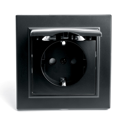 Розетка 1-местная c/з с крышкой STEKKER, PST16-9012-03, 250В, 16А, с защитной шторкой, серия Эрна, черный 39481