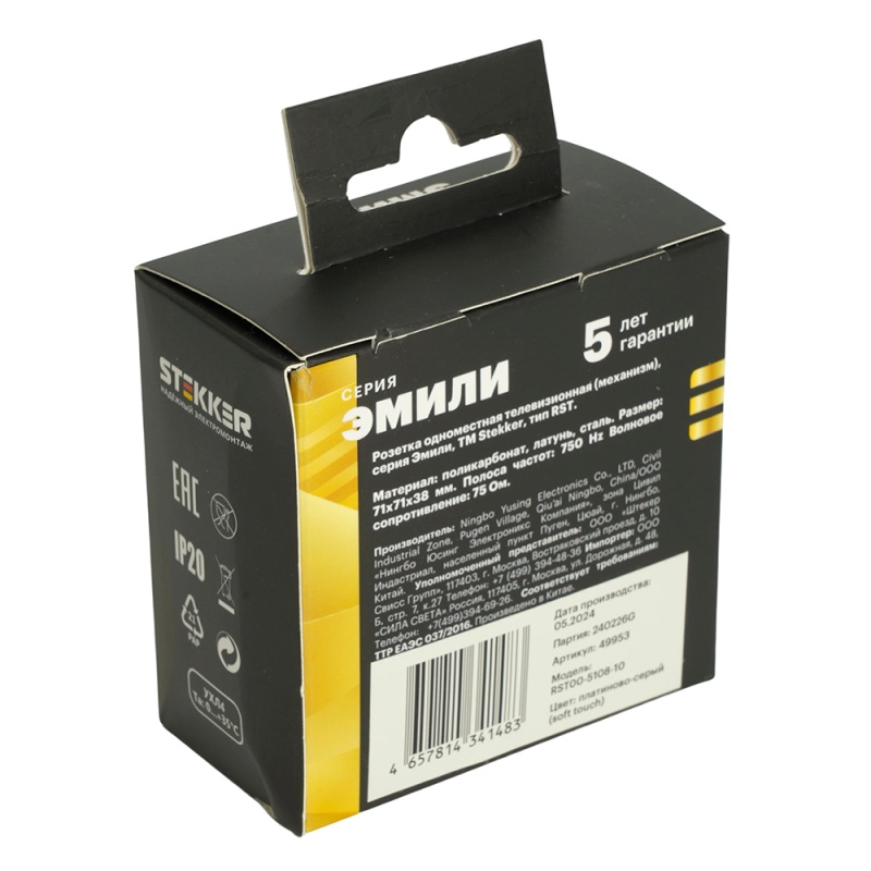 Отзывы о Розетка телевизионная 1-местная (механизм), STEKKER, 75 Ом, 5-862МГц, серия Эмили, RST00-5108-10, платиново-серый, soft touch
