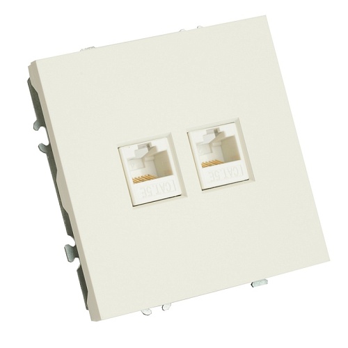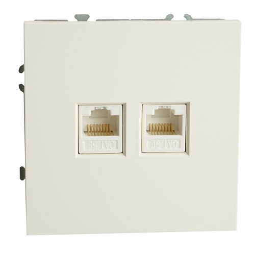 Розетка компьютерная 2-местная RJ-45 (механизм), STEKKER, серия Эмили, RST00-5111-01, белый фарфор, soft touch