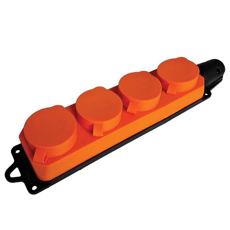 Розетка переносная 4-местная c/з STEKKER, RST16-24-44-5 (РП 16-232), 250В, 16А, IP44, оранжевый