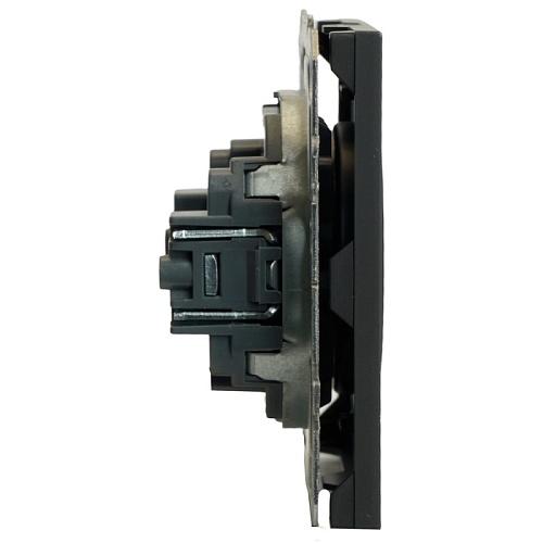 Розетка 1-местная с защитной шторкой (механизм), STEKKER, б/з, 250В, 16А, серия Эмили, RST16-5109-05, черный уголь, soft touch