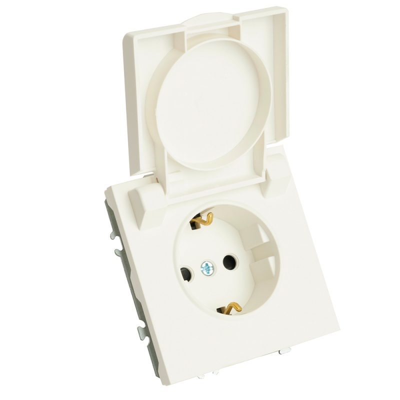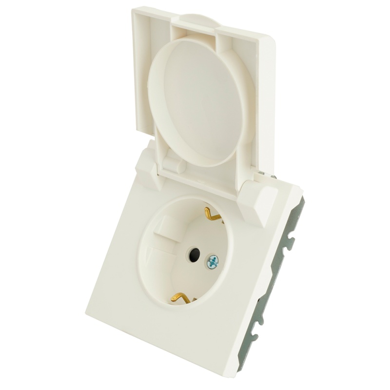 Характеристики Розетка 1-местная с крышкой с защ. штор, STEKKER, с/з, 250В, 16А, серия Эмили, RST16-5112-01, белый фарфор, soft touch