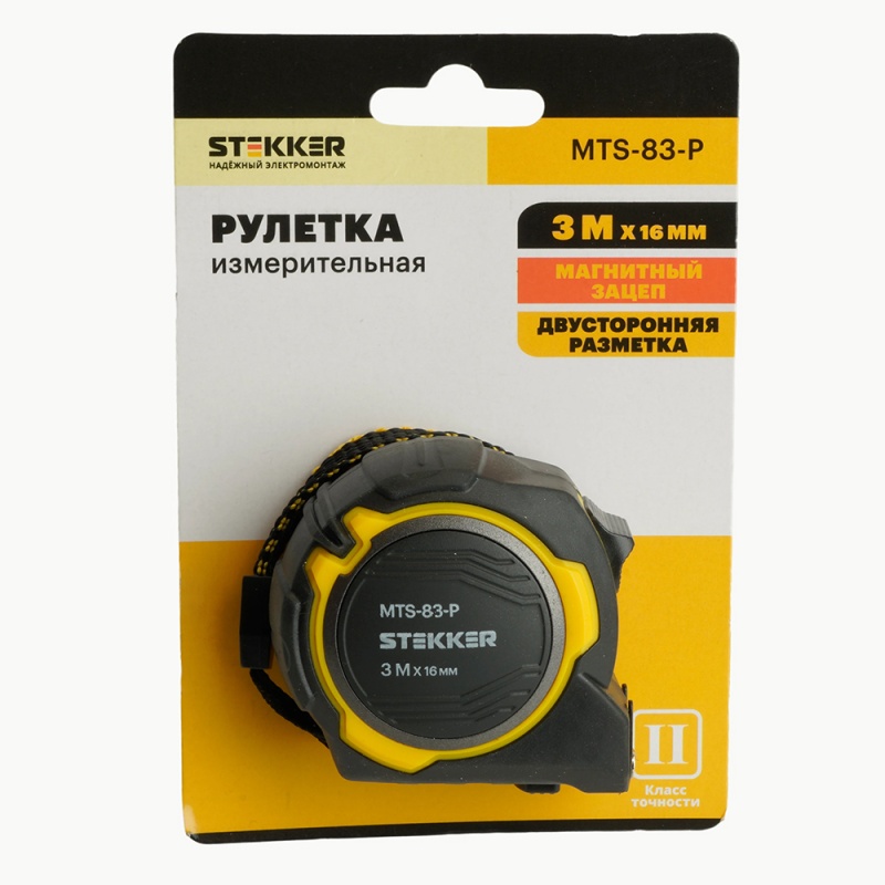 Рулетка, 3 м х 16 мм, магнит, II класс точности, двухстороннее нанесение, STEKKER MTS-83-P