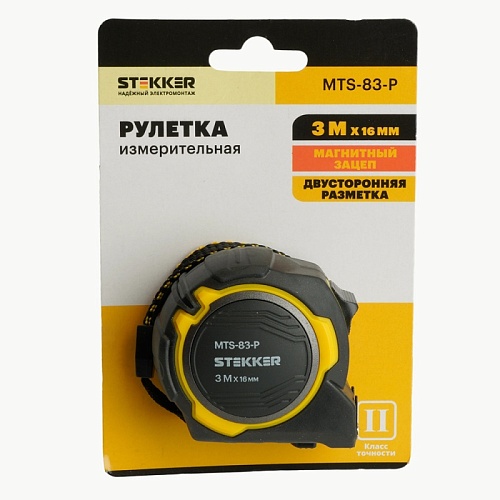 Рулетка, 3 м х 16 мм, магнит, II класс точности, двухстороннее нанесение, STEKKER MTS-83-P 50209