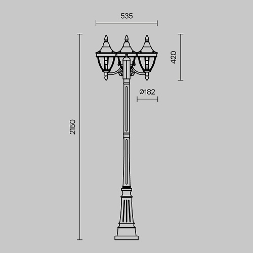 Серия классических садово-парковых светильников разных размеров и способов монтажа. Отличительной чертой серии являются плафоны с декоративными накладками и куполом-маковкой. Корпуса светильников сделаны из устойчивого к перепадам температуры и коррозии алюминиевого сплава по технологии художественного литья. Светильники окрашены порошковой краской черного цвета. В качестве источников света используются лампы c цоколем E27.