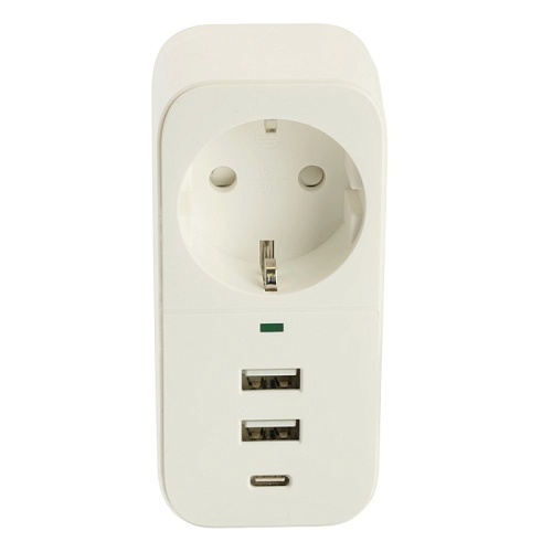 Сетевой фильтр 1-местный с/з STEKKER 250В, 16А, 2USB+1Type-C 2,4 A, серия Nova, HM81-11-1, белый 50142