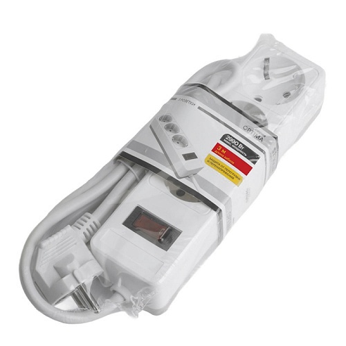 Отзывы о Сетевой фильтр 3-местный с/з STEKKER HM20-31-03 3x1мм2, 3 м, 250В, 16А, серия Optima, белый