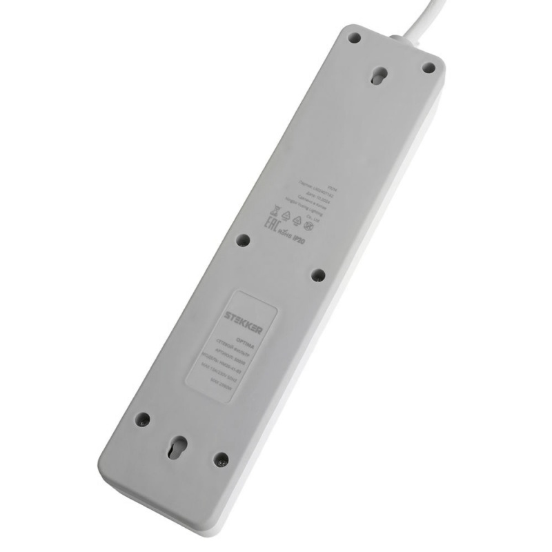 Характеристики Сетевой фильтр 4-местный с/з STEKKER HM20-41-05 3x1мм2, 5 м, серия Optima, белый