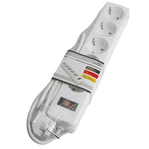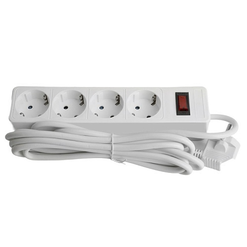 Сетевой фильтр 4-местный с/з STEKKER HM20-41-05 3x1мм2, 5 м, серия Optima, белый 50091
