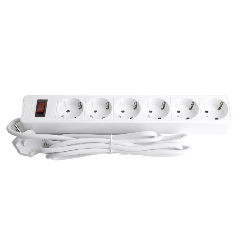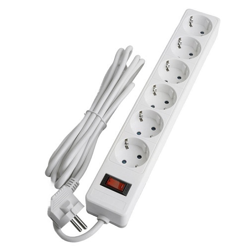 Сетевой фильтр 6-местный с/з STEKKER HM20-61-03 3x1мм2, 3 м, серия Optima, белый 50096