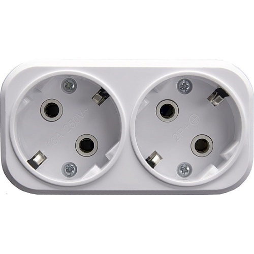 Разветвитель сетевой 2-местный с/з STEKKER ADP16-22-20 250V, 16A, ABS огнеустойчивый пластик, белый 39023