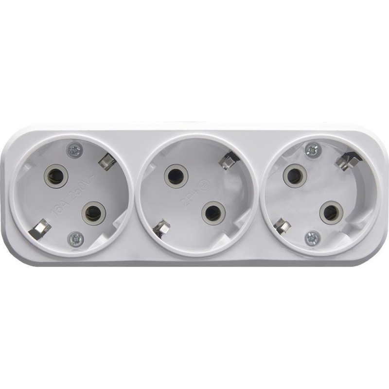 Разветвитель сетевой 3-местный с/з STEKKER ADP16-23-20, 250V, 16A, ABS пластик, белый 39024