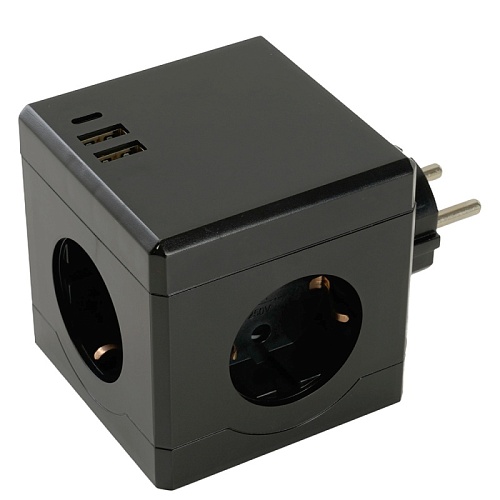 Разветвитель сетевой 3-местный с/з STEKKER ADP16-33-22, 250V, 16A, ABS пластик, черный