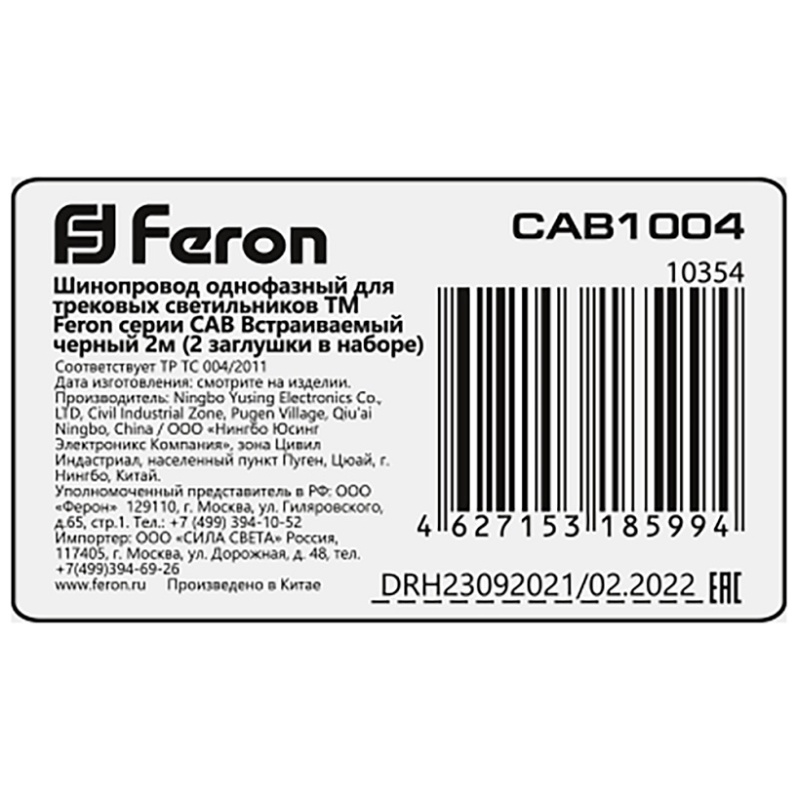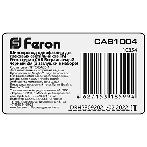 Шинопровод встраиваемый для трековых однофазных светильников, белый, 3м, в наборе токоввод, заглушка, крепление, CAB1004 10355