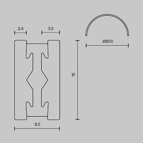 Характеристики Шинопровод полукруг 800 мм Technical TRX154-SR-D800-BS